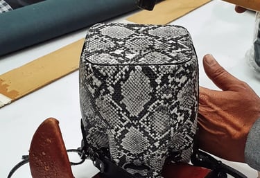 Trabalhamos com materiais premium, selecionados para garantir durabilidade e acabamento impecável. Nossa fábrica e equipe são especializadas em couro legítimo, conectando você a uma ampla rede de fornecedores de curtume, metais e componentes para encontrar o material ideal para o seu projeto.